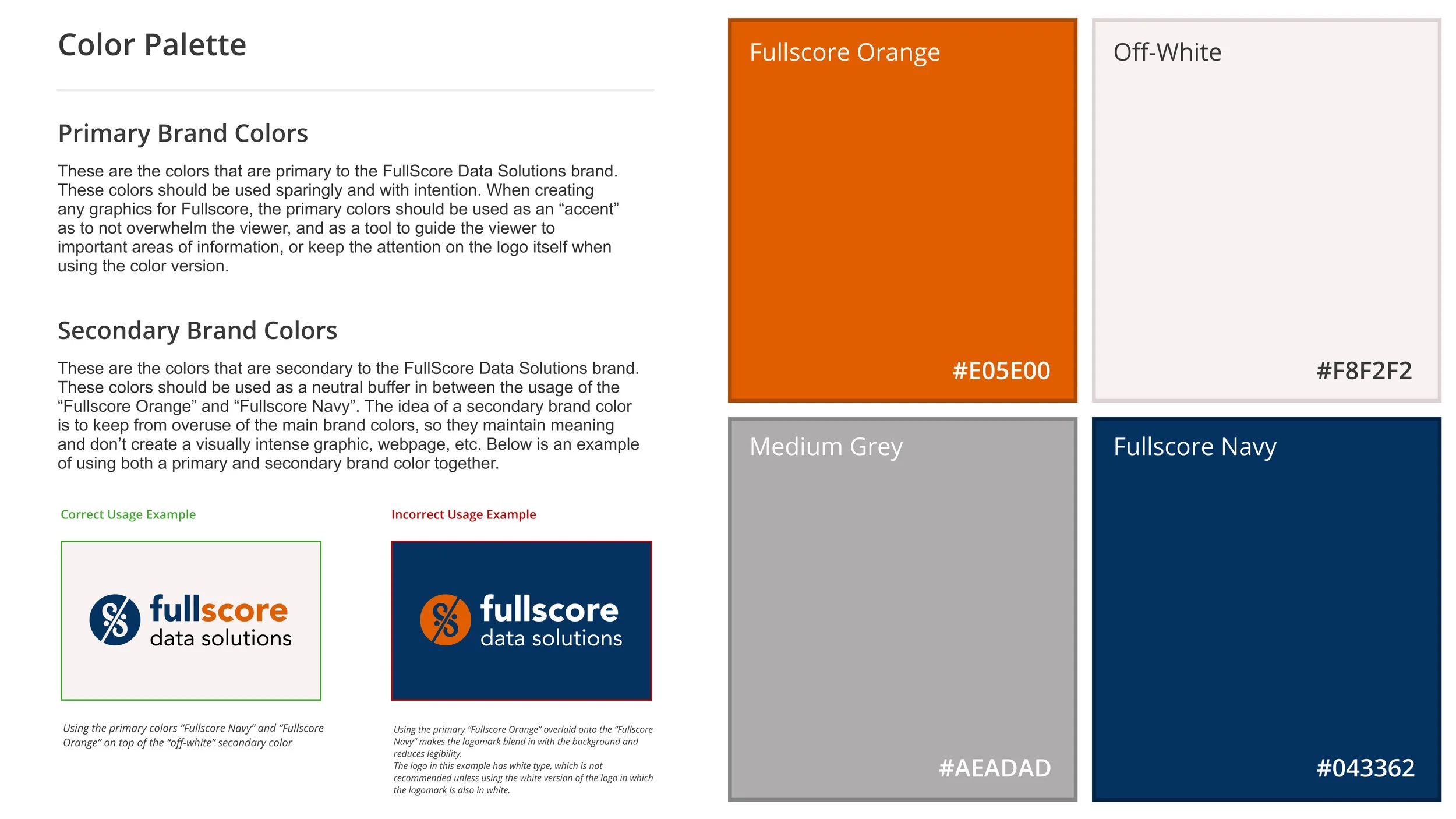 The logo idea for Fullscore started with the companies founder and managing director, Thomas McCullough, who wanted his love for data and music to be shown in the branding for his new company.